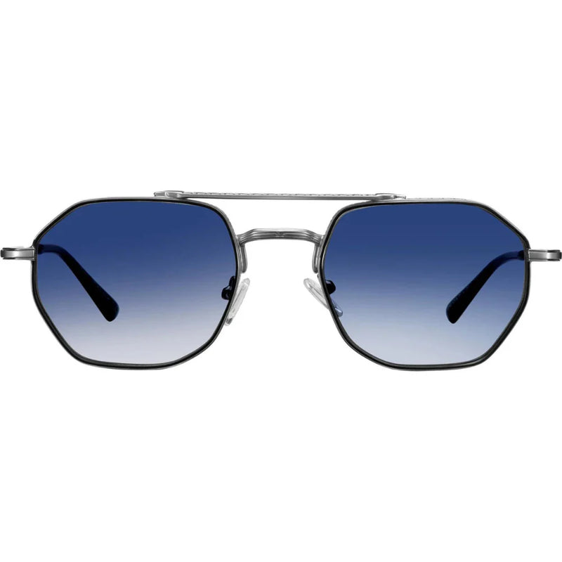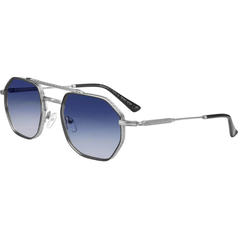La Thanos s'impose par son style élaboré à la croisée du détail, de la précision et du caractère. C'est habillé d'un motif graphique et géométrique, puisé dans l'art culturel grec qu'elle se révèle et met en valeur sa forme anguleuse. Cette monture solaire en acier inoxydable, pousse le souci du détail jusque dans les plus fins éléments qui l’ornent. Élaborée grâce à un moulage de précision, elle laisse apparaître un liseré d'époxy déposé avec délicatesse sur sa face, créant, ainsi, une combinaison bi-couleur qui souligne sa silhouette atypique.